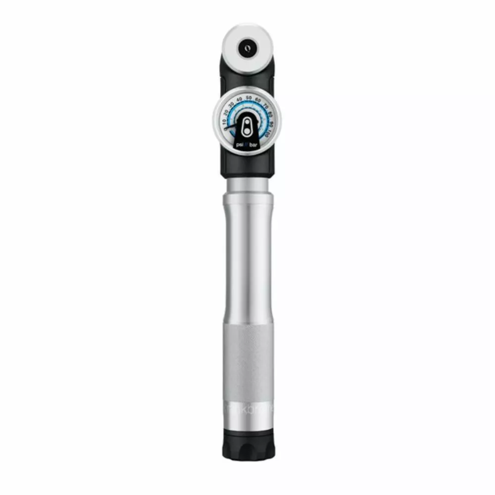 Pumpen er forsynet med manometer så du kan sætte det helt rigtige dæktryk på din cykel.