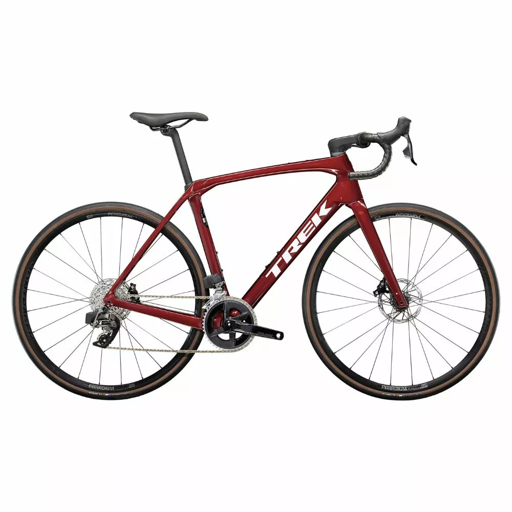 Domane SL 6’s ramme er bygget af det lette OCLV 500 Carbon laminat. Sammen med det vibrationsdæmpende Isospeed bliver du flyvende over de ujævne passager uden at du mærker til det. Gearene er 100% trådløst elektronisk skifte fra Sram. En sand fornøjelse og præcision som gør at du aldrig får lavet et fejlskifte eller har en kæde der går på forskifteren. De 2 X 12 speed gear skifter hurtigere, lettere og super effektivt. De ultra lette Paradigm Comp Tubeless hjulsæt med Rapid Drive nav er så stærke at Trek ikke har nogen øvre vægtgrænse for rytterens vægt.