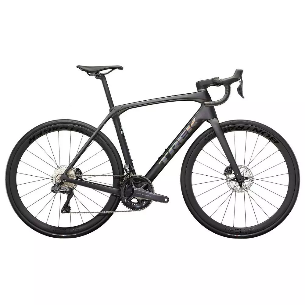 Denne Domane SLR 7 landevejsracer er monteret med den nye elektroniske og trådløse Shimano Ultegra 12 speed Di2 geargruppe. Et mesterværk af nutidens teknologi med et problemfrit smooth og lynhurtigt gearskifte. Geargruppen er et optimalt valg til Treks lette Carbon ramme. Rammen er bygget af deres dyreste carbon laminat der hedder OCLV 800. Her er vægt, stivhed og komfort forenet til perfektion så du kan cykle endnu længere, hurtigere og have det meget sjovere. Domane er udviklet til rytteren der ønsker en mere komfortabel sidestilling og en vibrationsfri racercykel med fokus på udholdendhed og de lange motions cykelløb.